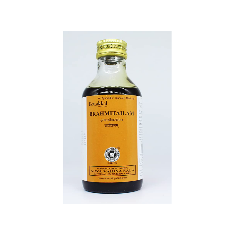 Kottakkal Brahmi Tailam est une huile ayurvédique classique fabriquée par Arya Vaidya Sala, Kottakkal, principalement utilisée pour l’application sur la tête. Elle est préparée à base de Brahmi (Bacopa monnieri) comme ingrédient principal, associé à d’autres plantes, dans une base d’huile de coco ou de sésame (selon la formulation).