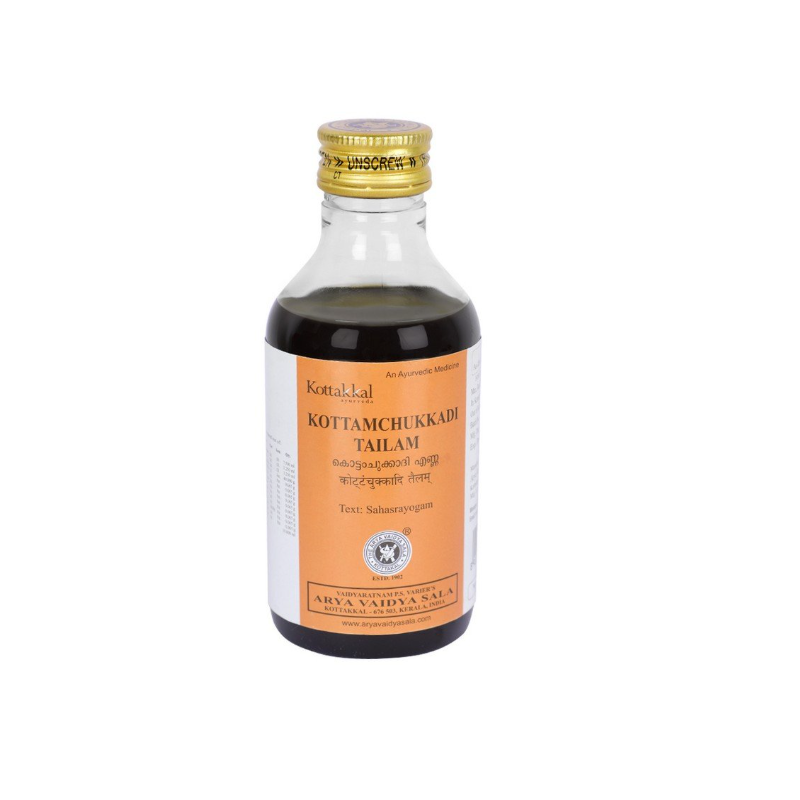 Le Kottamchukkadi Tailam est une huile ayurvédique traditionnelle fabriquée par Kottakkal Arya Vaidya Sala, une institution réputée en Inde. Cette huile est utilisée pour soulager les douleurs et inflammations musculaires et articulaires, en particulier celles liées aux troubles du dos, de la sciatique, de l'arthrite et de la spondylose