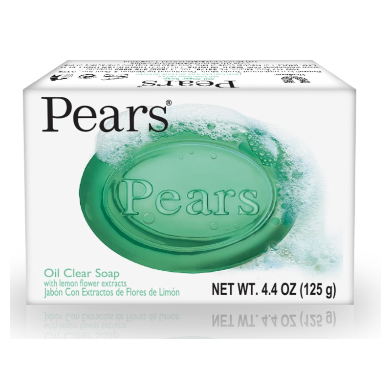 Le savon Pears avec extraits de fleur de citron est un savon translucide vert enrichi en glycérine et en huiles naturelles, conçu pour nettoyer et hydrater la peau en douceur.