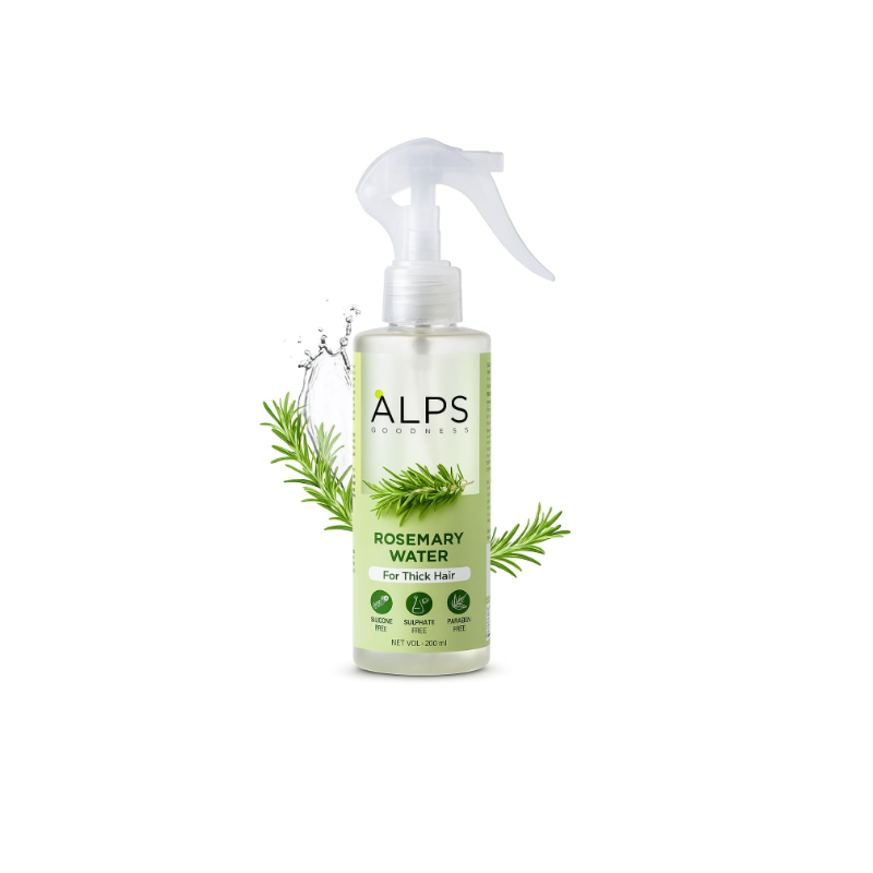 Alps Goodness Rosemary Water c’est une eau de romarin (distillée — « steam‑distilled rosemary leaf water ») présentée sous forme de spray capillaire.Elle est conçue pour favoriser la santé du cuir chevelu et des cheveux, en misant sur les propriétés naturelles du romarin.