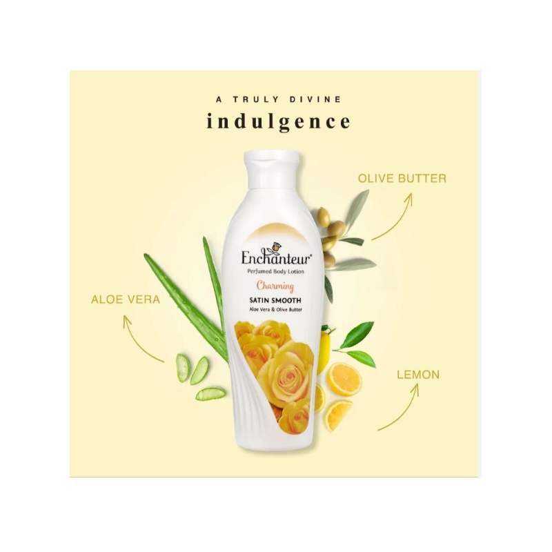 Enchanteur Lait Hydratant Parfumé 24H Charming est un lait corporel légèrement parfumé, conçu pour une hydratation longue durée et un parfum doux et romantique. Inspiré de la parfumerie française classique, ce soin hydratant quotidien pénètre rapidement pour une peau douce et confortable jusqu'à 24 heures. Son format pratique de 250 ml permet une utilisation facile à la maison ou en déplacement.